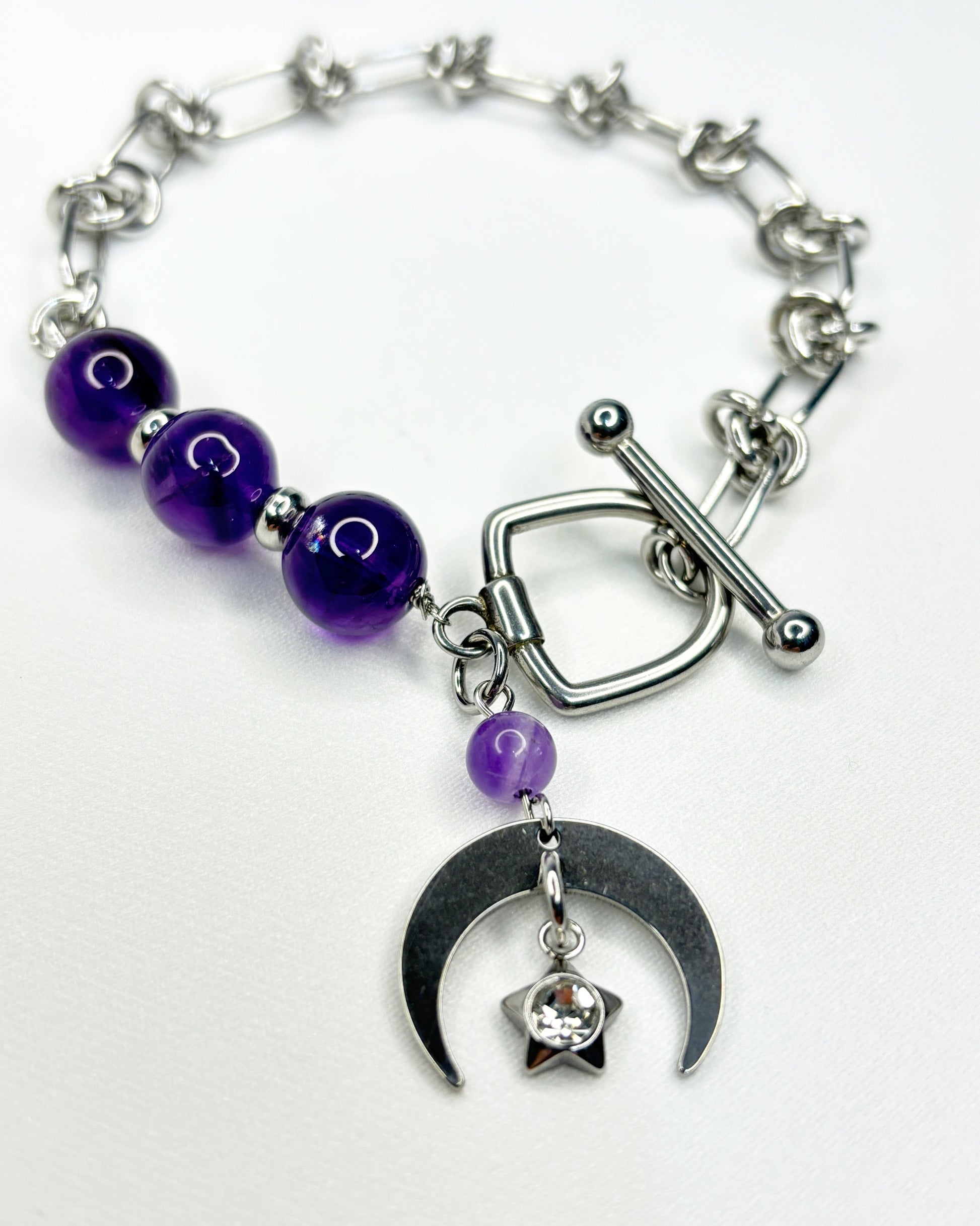 Material: amethyst gemstone with stainless steel chain and findings